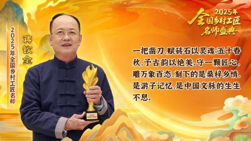 日前,福建省文史研究馆馆员蒋钦全荣获“全国乡村工匠名师”称号。