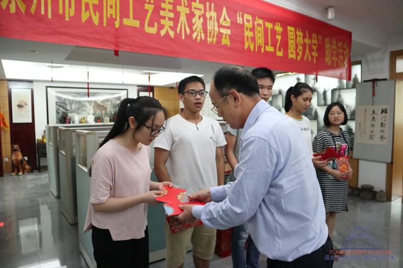 8月23日下午,泉州市民间工艺美术家协会 “民间工艺 圆梦大学”助学活动在我司办公楼举办。公司董事长蒋钦全为协会主席。泉州市委宣传部副部长兼泉州市文联主席许旭明、民进…