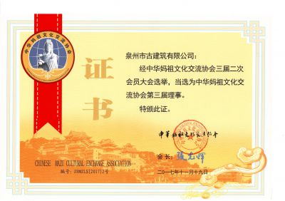 经中华妈祖文化交流协会三届二次会员大会选举,我司当选为中华妈祖文化交流协会第三届理事。