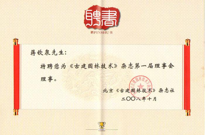 2016年1月18日,中国民间文艺家协会中国建筑与园林艺术委员会成立大会在北京江西大厦隆重举行,蒋钦全董事长荣任委员会常务理事。
