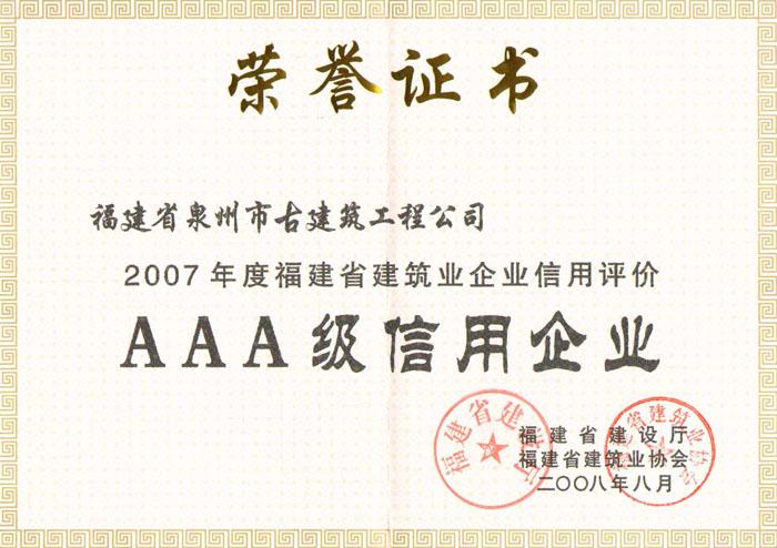 福建省建设厅、省建筑业协会授予我司AAA级信用企业荣誉证书