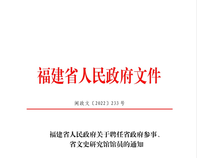 福建省人民政府关于聘任省政府参事、省文史研究馆馆员的通知
