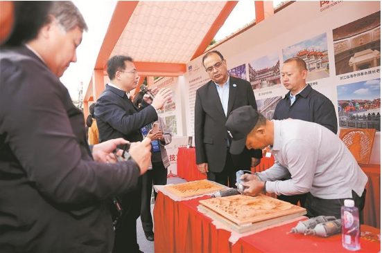 木作、砖雕、堆剪……25日,众多“闽南传统民居营造技艺”非遗代表性传人齐聚泉州府文庙崇圣祠广场,展示各自非凡技艺。据悉,2009年闽南传统民居营造技艺作为“中国传统木结构营造技艺”子项被列入联合国教科文组织人类非物质文化遗产代表作名录。