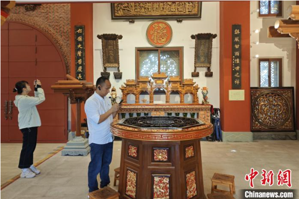 中新网泉州11月16日电 (吴冠标)红砖白石、燕脊翘檐、雕饰彩绘……在福建省泉州市惠安县崇武镇,一座矗立的六层闽南传统风格建筑,从外观的布置到内部的陈设,无不彰显着闽南传统民居营造技艺的精髓,令人叹为观止。