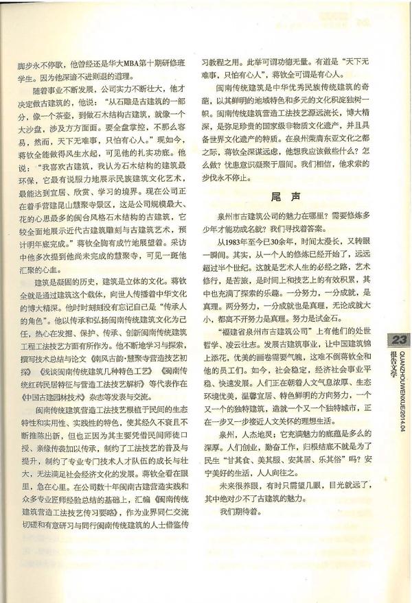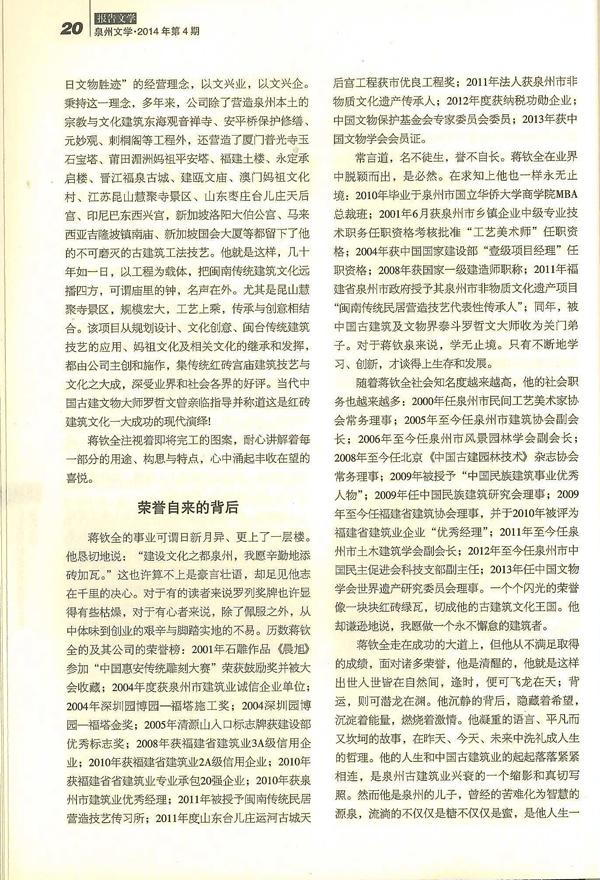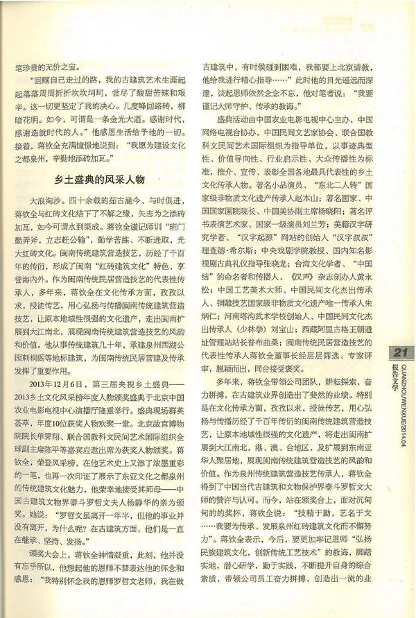 《泉州文学》2014年第4期-----《红砖建筑传承人》