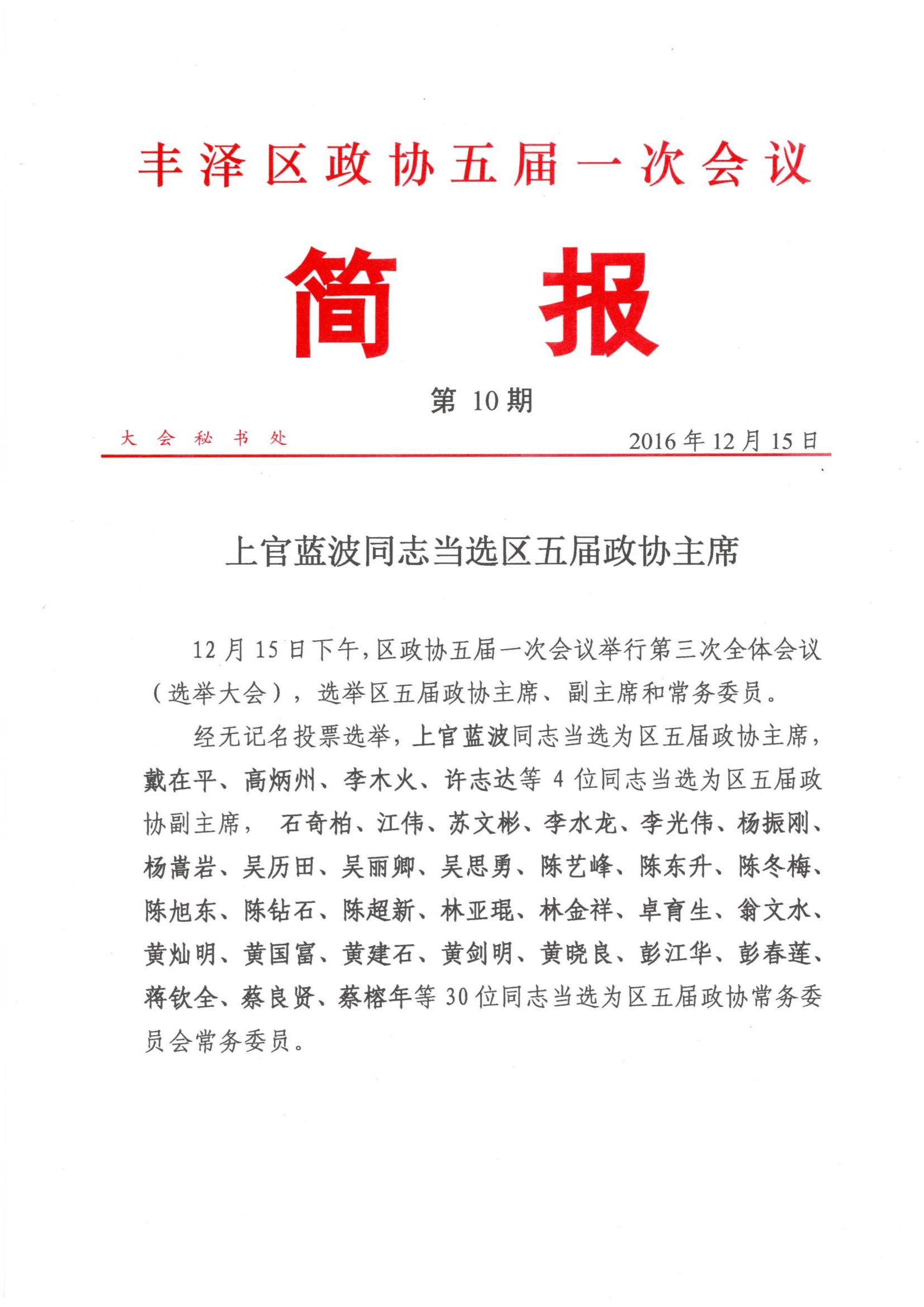 12月15日下午举行第三次全体会议(选举大会),选举区五届政协主席、副主席和常务委员,我司蒋钦全董事长被选举为区五届政协常务委员会常务委员。
