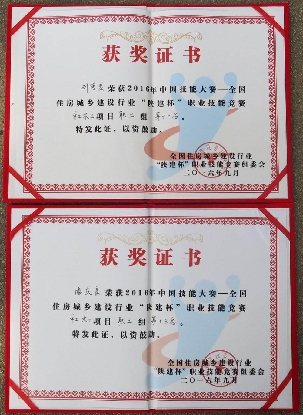 2016年中国技能大赛—全国住房城乡建设行业“陕建杯”职业技能竞赛于9月25日圆满落幕,我司团队荣获“优秀组织奖”,参赛队员取得全国第十一名及第十三名的好成绩。