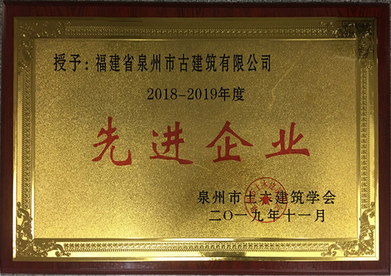 我司荣获2018-2019年度泉州市土木建筑学会先进企业