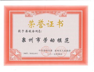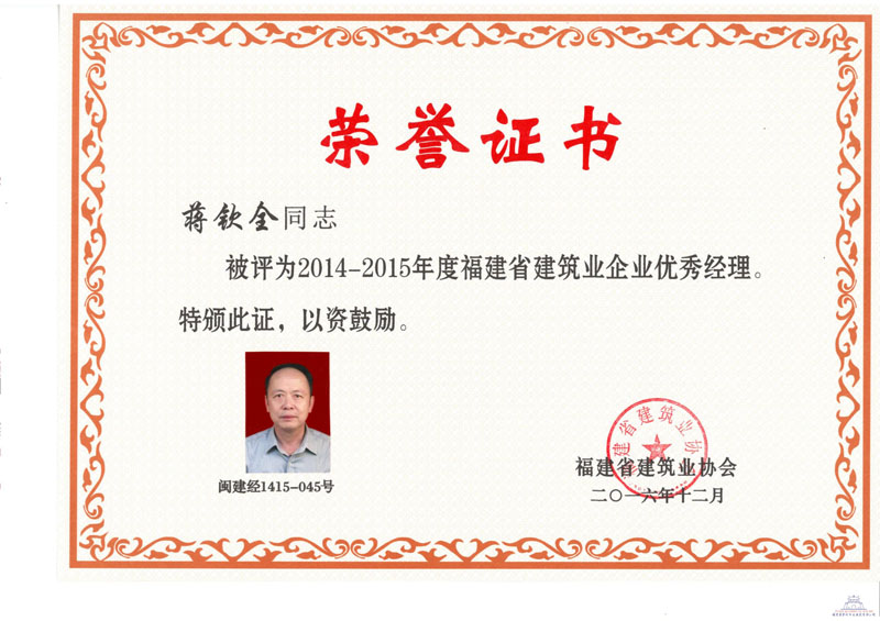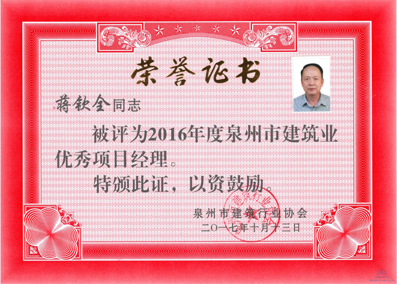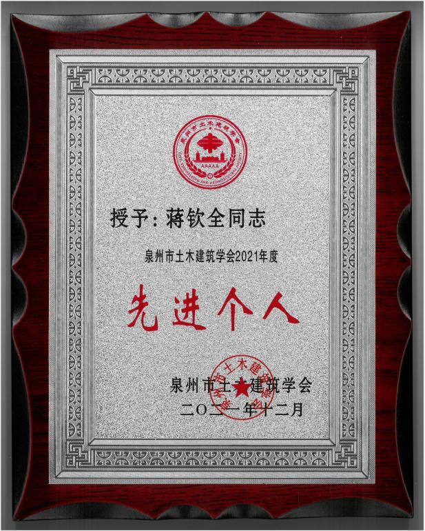 董事长蒋钦全荣获泉州市土木建筑学会2021年度先进个人
